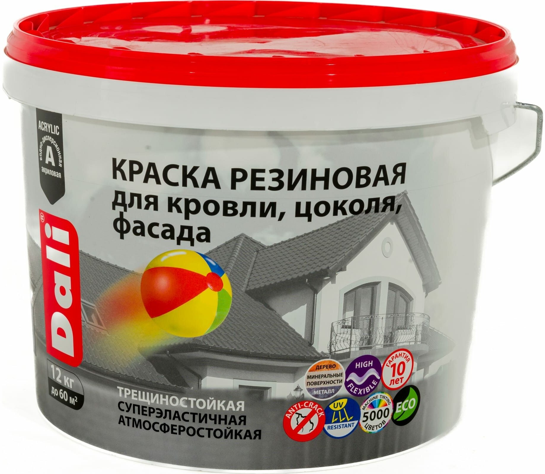 Резиновая краска для наружных работ Dali на водной основе, для крыш, фасадов, цоколей, база С - 12 кг