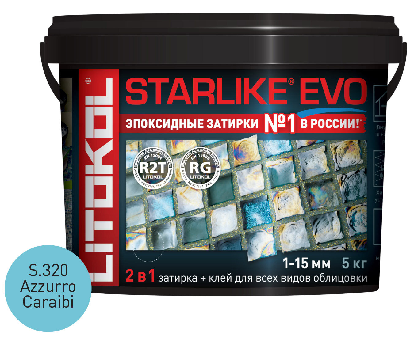 Купить Затирка эпоксидная двухкомпонентная Litokol Starlike Evo S.320, Azzurro Caraibi, 5 кг