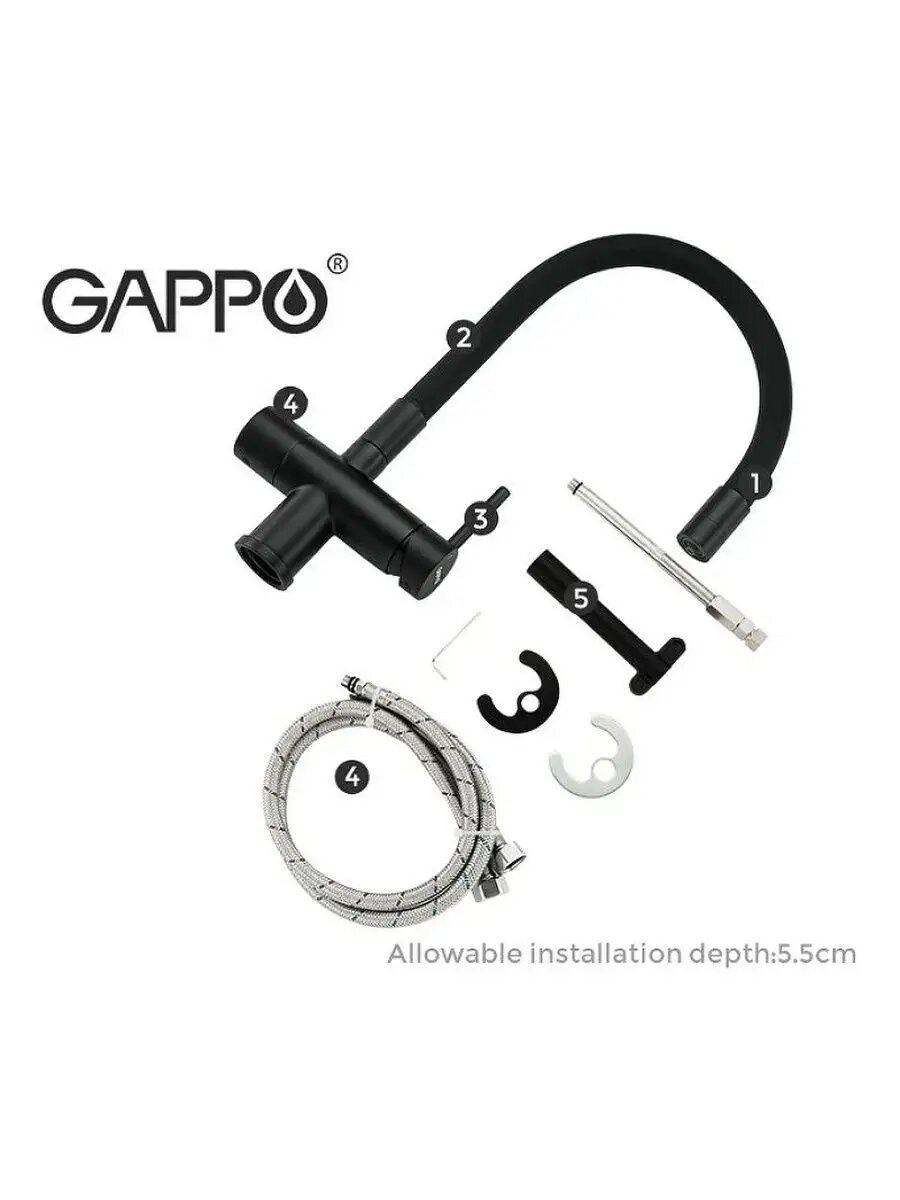 G4398-36 Cмеситель Кухня GAPPO d-35 c подключением фильтра питьевой воды (черный)