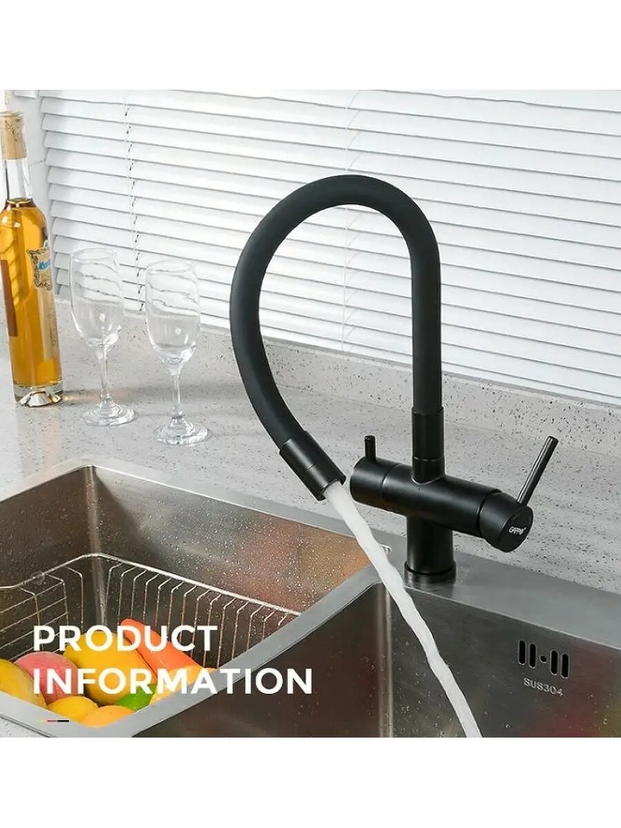 Смеситель для кухонной мойки Gappo G97-86 G4397-86 с подключением фильтра питьевой воды и гибким изливом, черный