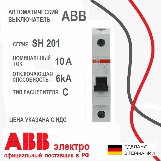 Купить Автоматический выключатель ABB SH201, 10A, 1P, 6кА, тип C