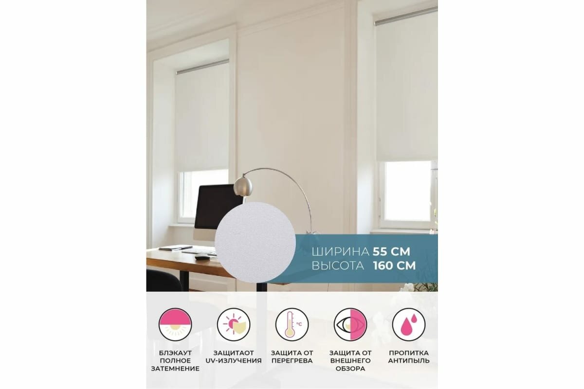 СохранитьРулонные шторы блэкаут Плайн Белый DECOFEST 55 см на 160 см, жалюзи на окна интересное: