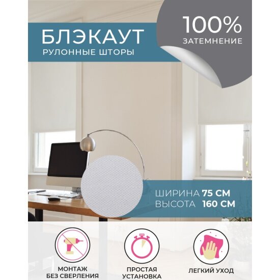 СохранитьРулонные шторы блэкаут Плайн Белый DECOFEST 75 см на 160 см, жалюзи на окна интересное: