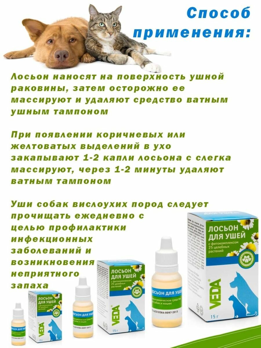 Лосьон VEDA для ушей собак и кошек , 15 мл , 15 г
