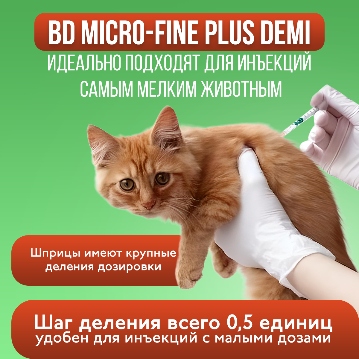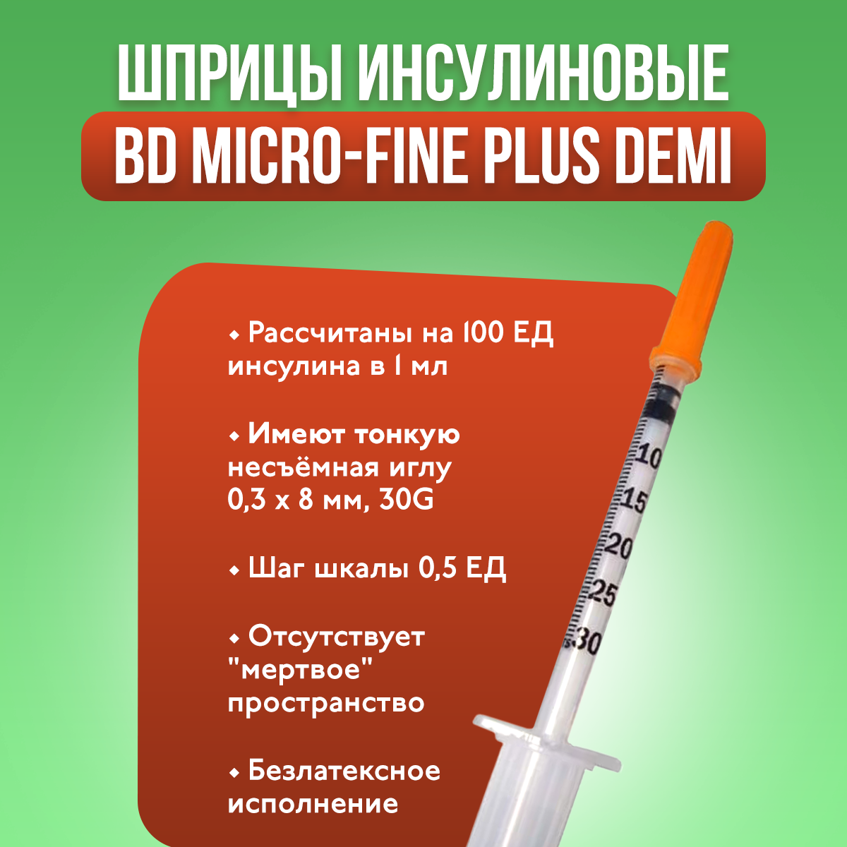 Шприц инсулиновый BD Micro-Fine Plus Demi, 0,3 мл, U-100, 30G, 100 штук, медицинский