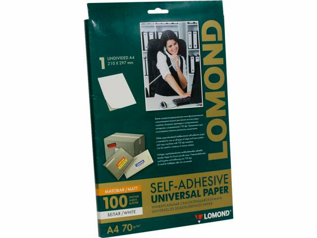 Бумага Lomond 2100001 Самоклеящаяся бумага LOMOND универсальная для этикеток, A4, (210 x 297 мм), 70 г/м2, 100 листов