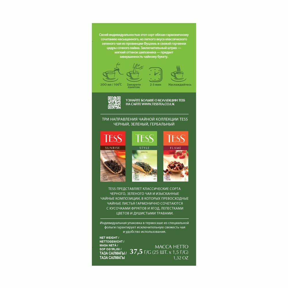 TESS зеленый чай с цедрой цитрусовых и ароматом лайма пакетированный LIME 1,5г*100п
