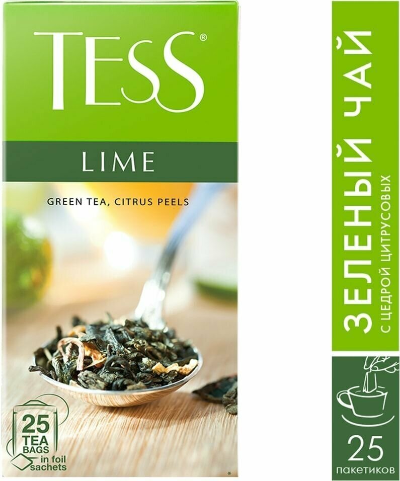Купить Чай Tess Lime пакетированный, зеленый с добавками, 25 пакетиков