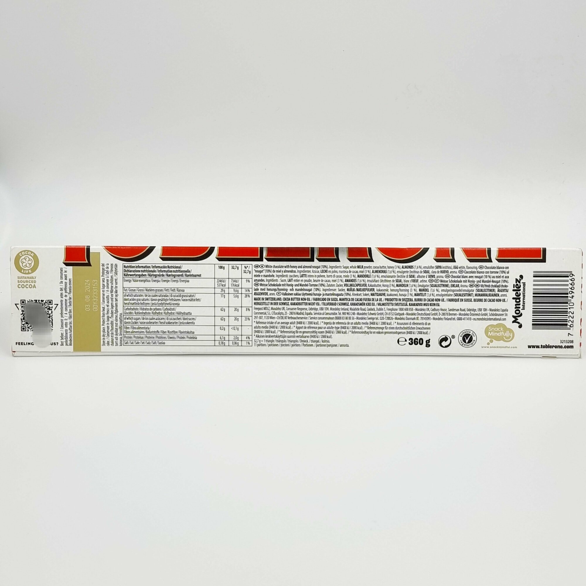 Шоколад Toblerone белый с медово-миндальной нугой, 360 г