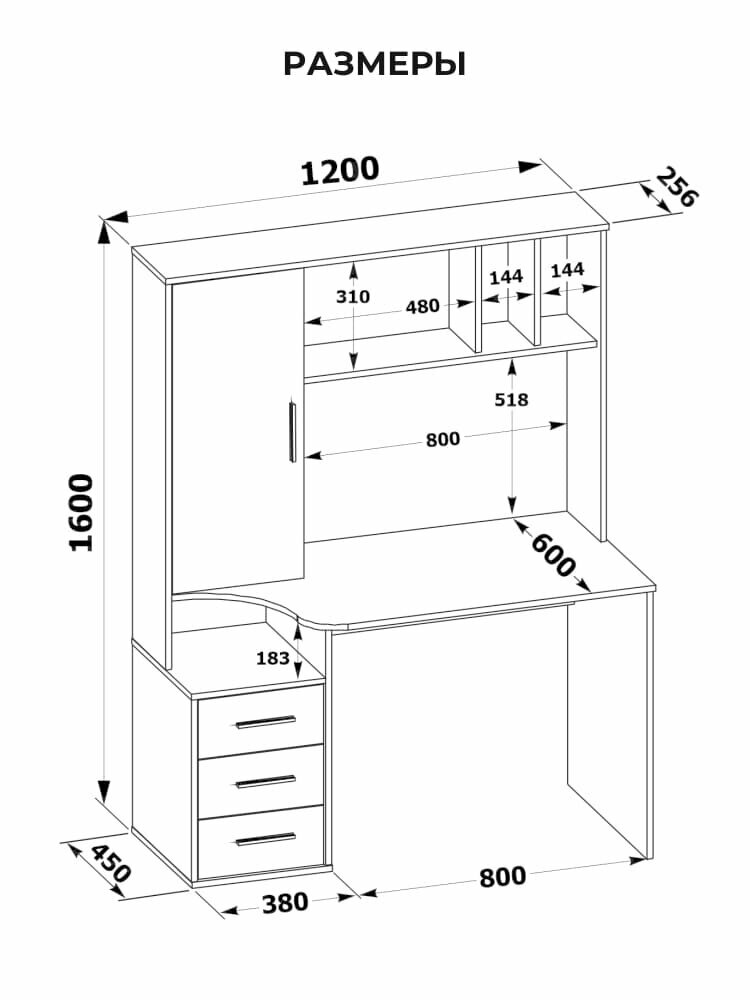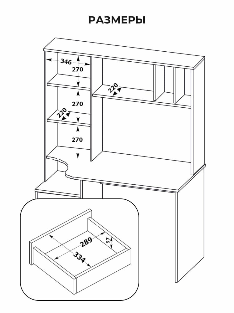 | Дополнительная информация | внутренний размер ящиков – 346 х 301 мм; размер ниши под монитор — 800 х 534 мм |