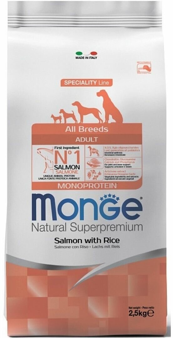 MONGE SPECIALITY DOG SALMON для взрослых собак всех пород с лососем и рисом (2,5 кг)