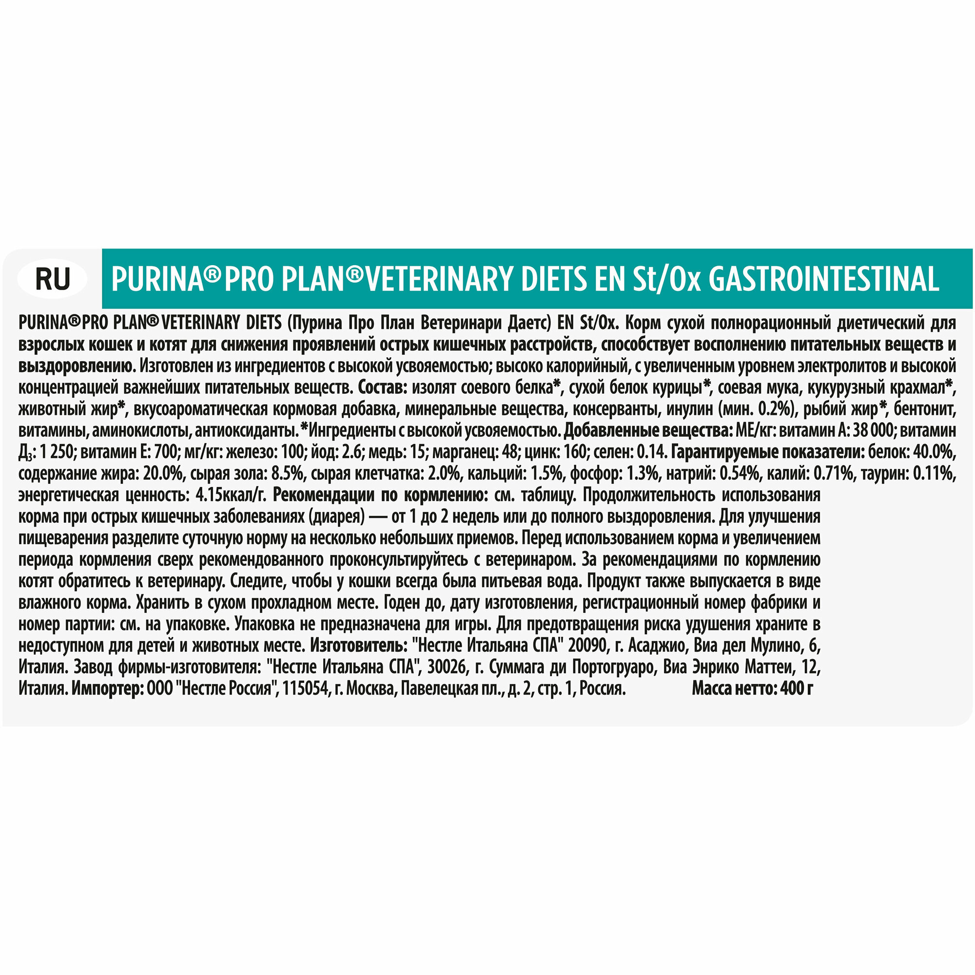Сухой корм для кошек Purina Pro Plan Veterinary Diets EN ST/OX GASTROINTESTINAL, для снижения проявлений острых кишечных расстройств, 12 шт. х 400 г
