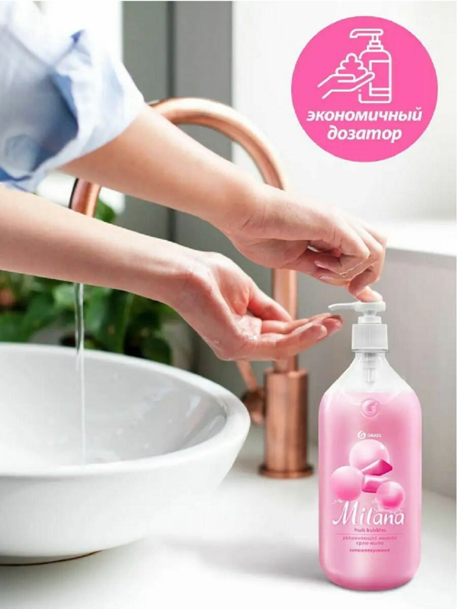 Жидкое крем-мыло MILANA FRUIT BUBBLES с дозатором флакон 1л GRASS 125312