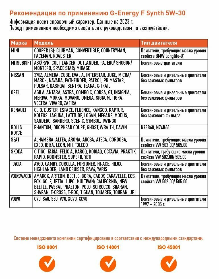 | Производитель | G-Energy |