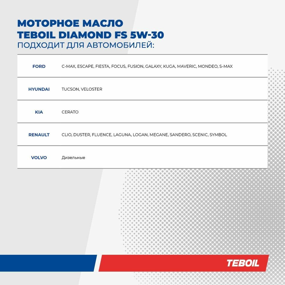 СохранитьСинтетическое моторное масло Teboil Diamond FS 5W-30, 4 л, 1 шт. интересное: