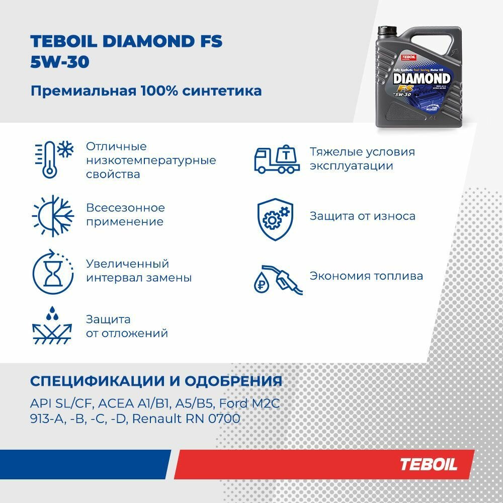 Teboil Рњр°Сѓр»Рѕ Рјрѕс‚Рѕсђрѕрѕрµ Сѓрёрѕс‚Рµс‚Рёс‡Рµсѓрєрѕрµ "Diamond Fs 5W-30", 4Р»
