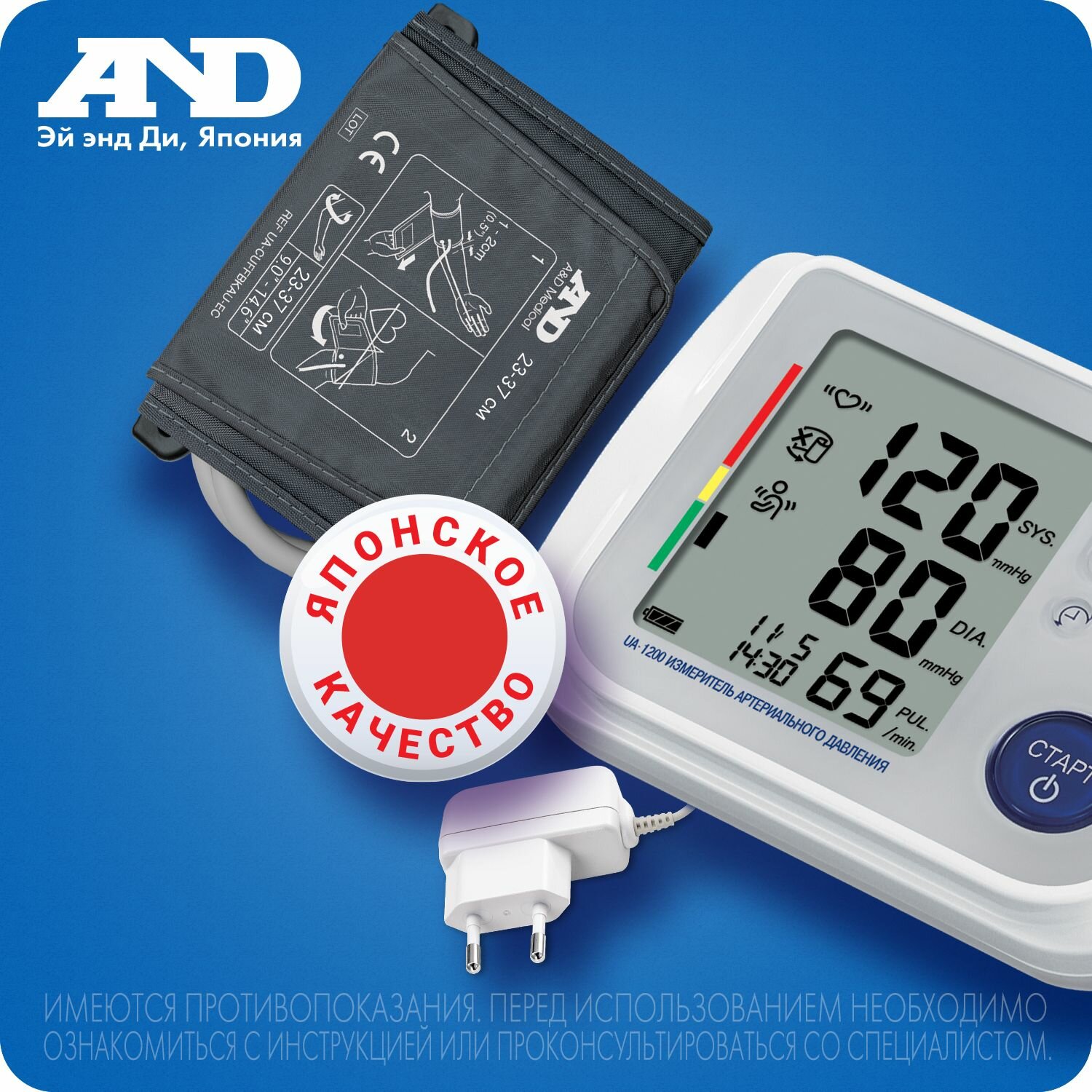 Тонометр AND UA-1200 AC с адаптером, 1 шт