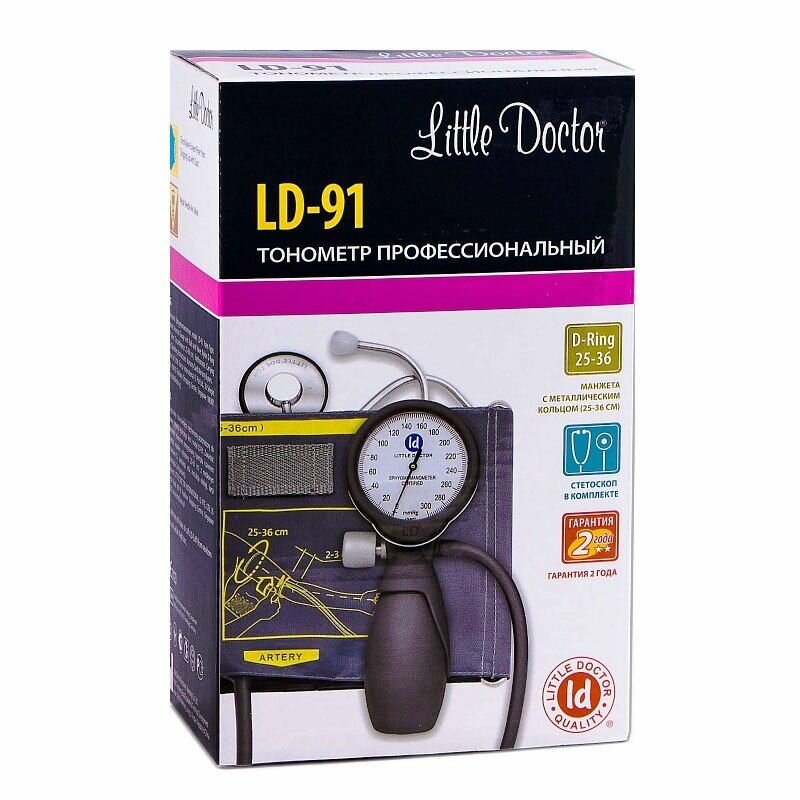 Тонометр механический LITTLE DOCTOR LD-91 защита от ударов, манжета 25-36см с кольцом, стетоскоп в комплекте
