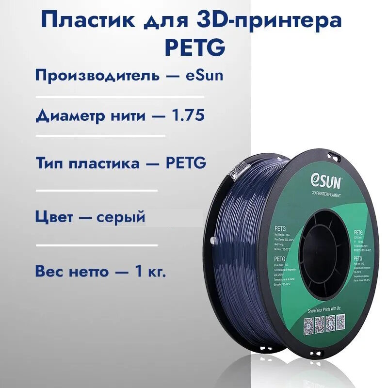 Купить Катушка PETG пластик для 3D принтера ESUN 1.75 Серый 1кг