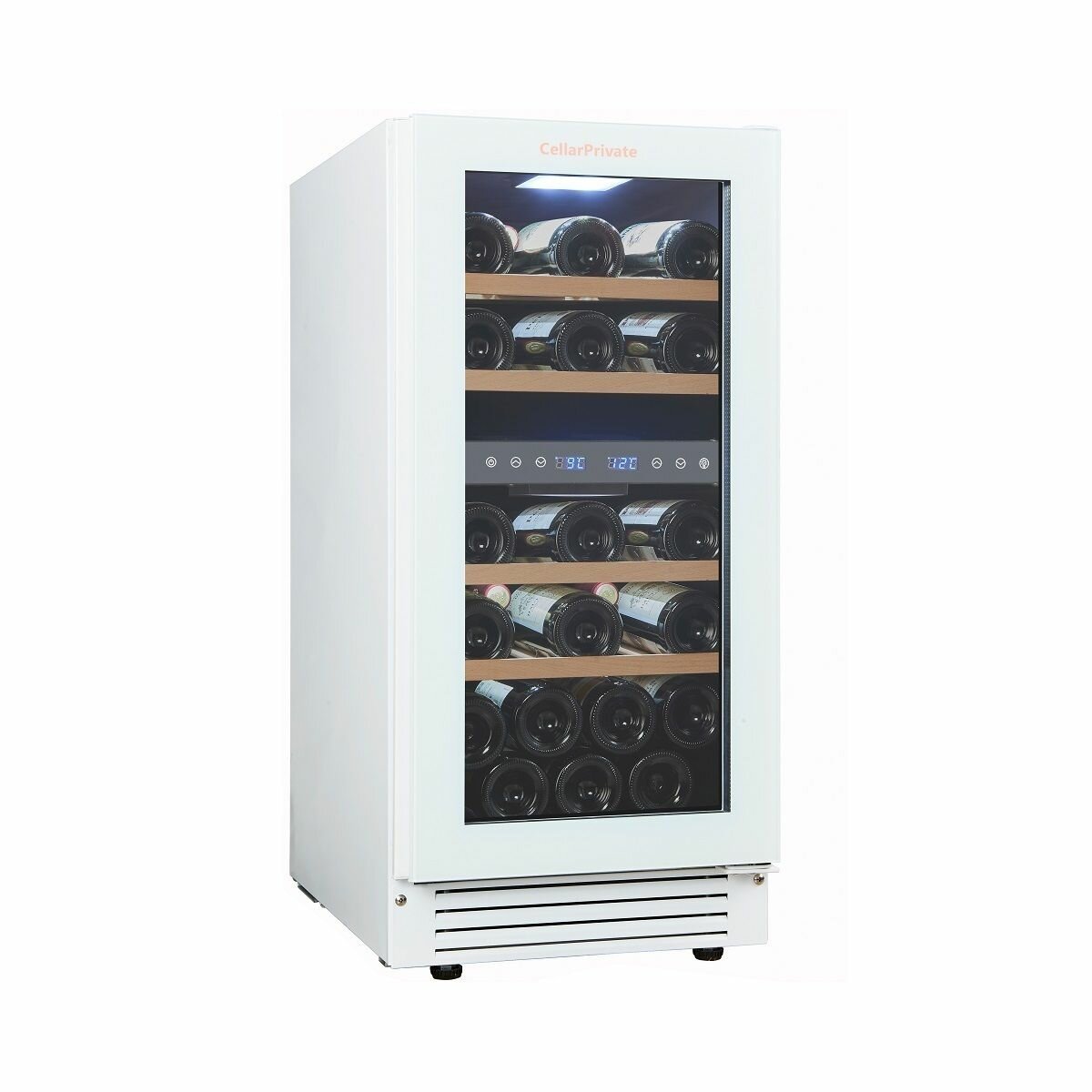 Винный шкаф Cellar Private CP027-2TWH, встраиваемый, двухтемпературный, скрытая ручка, 27бут, белый.