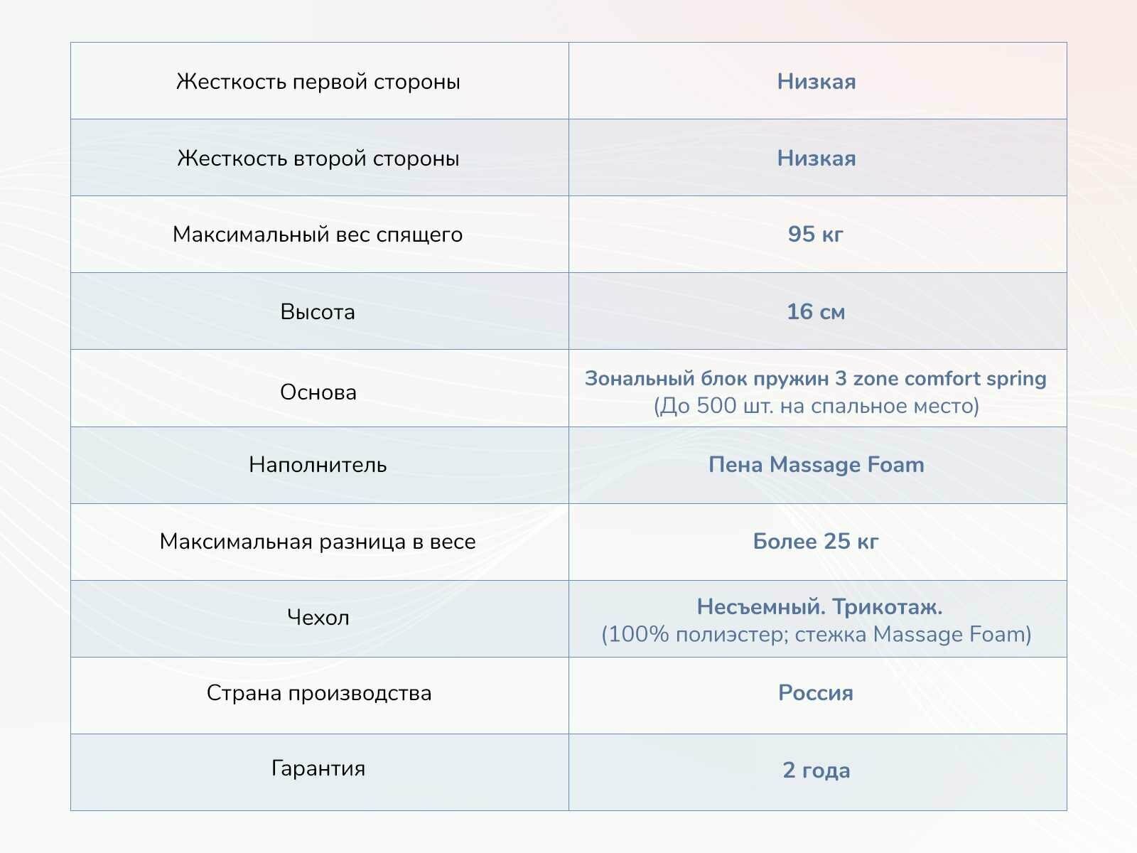 | Жесткость стороны 1 | средняя |