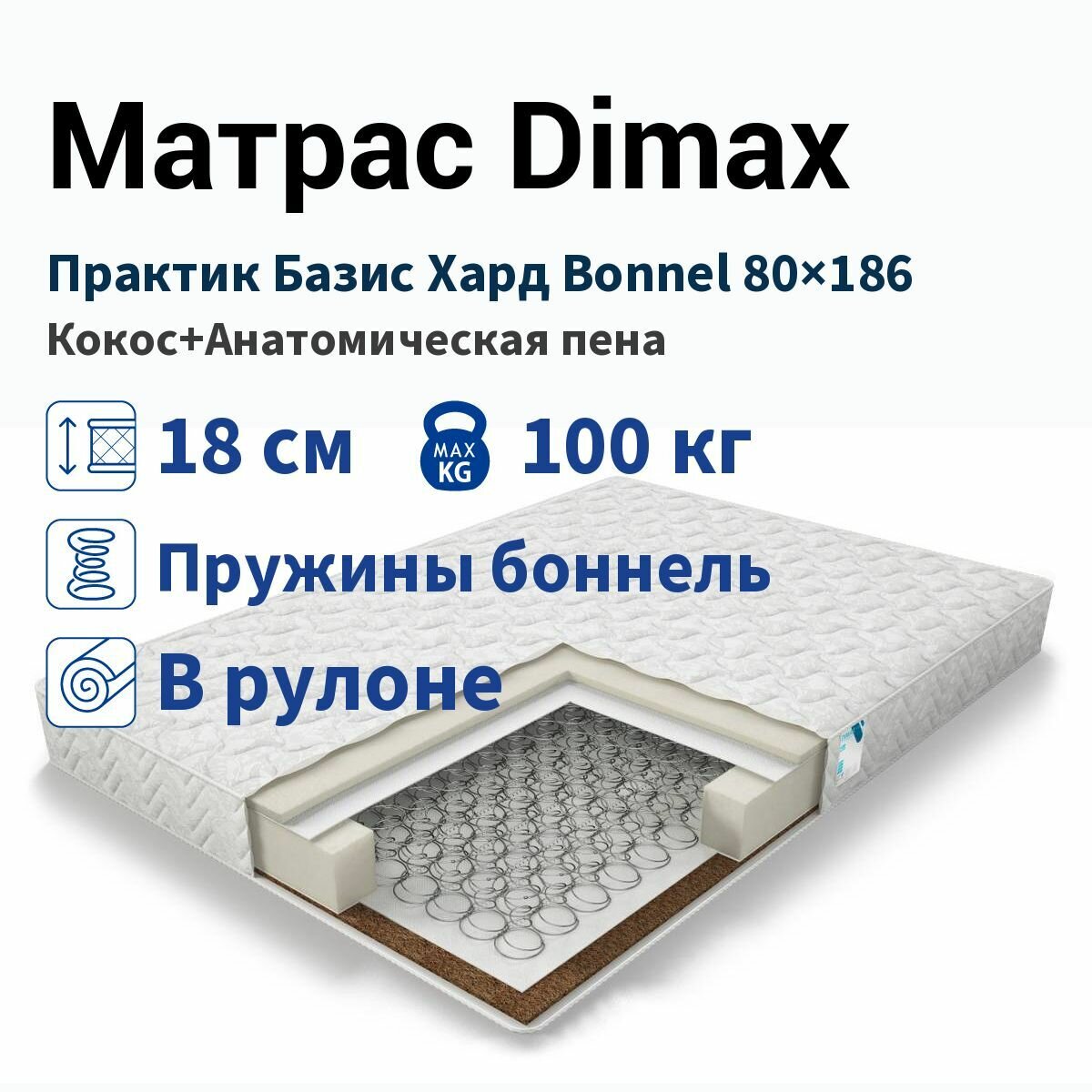 Матрас Dimax Практик Базис Хард Боннель 80х190, стандартный