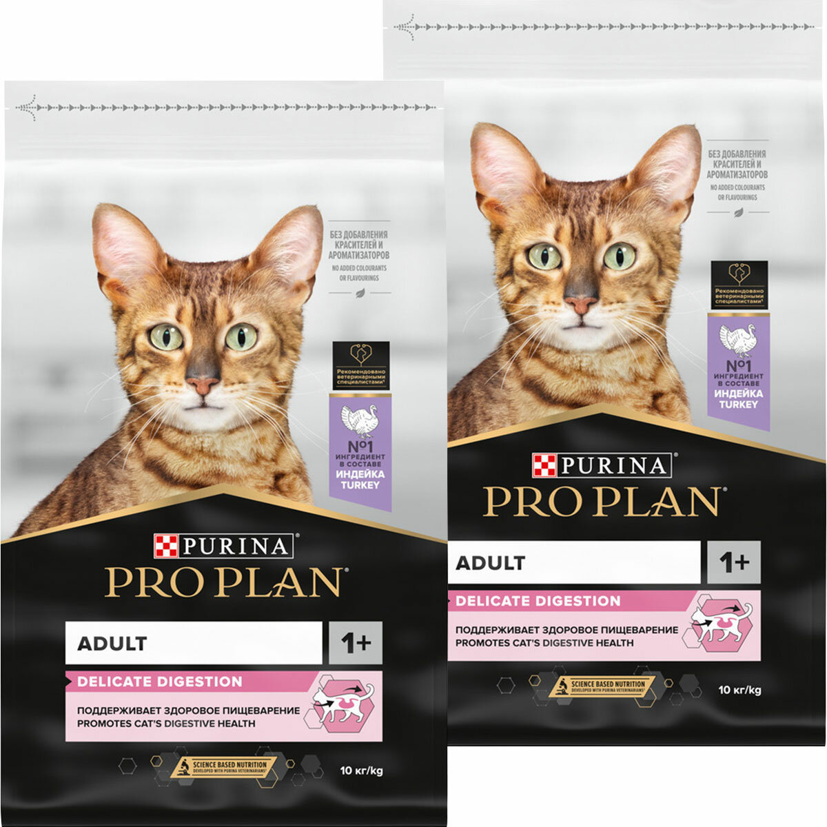 Купить PRO PLAN CAT ADULT DELICATE TURKEY для взрослых кошек с чувствительным пищеварением с индейкой (10 + 10 кг)