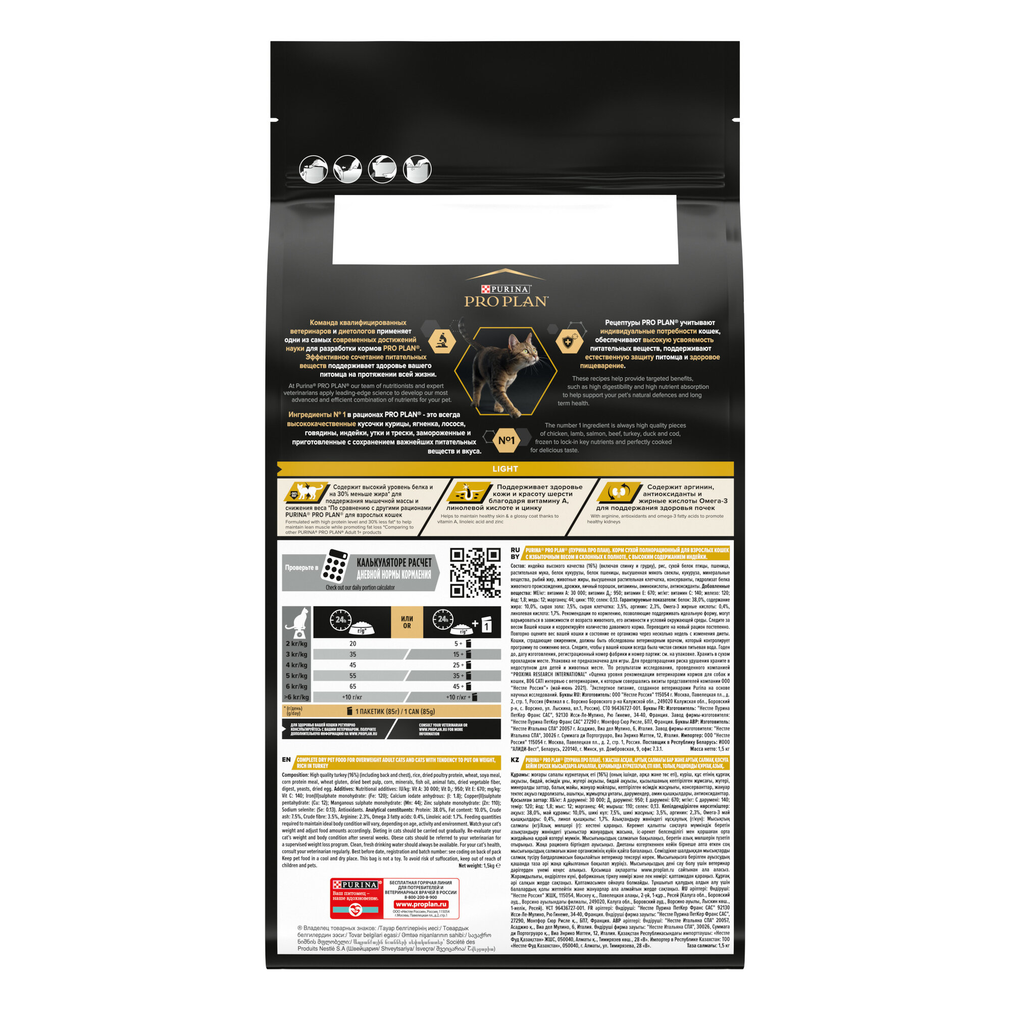 Сухой корм Pro Plan® для взрослых кошек с избыточным весом и склонных к полноте, с высоким содержанием индейки, Пакет, 1,5 кг