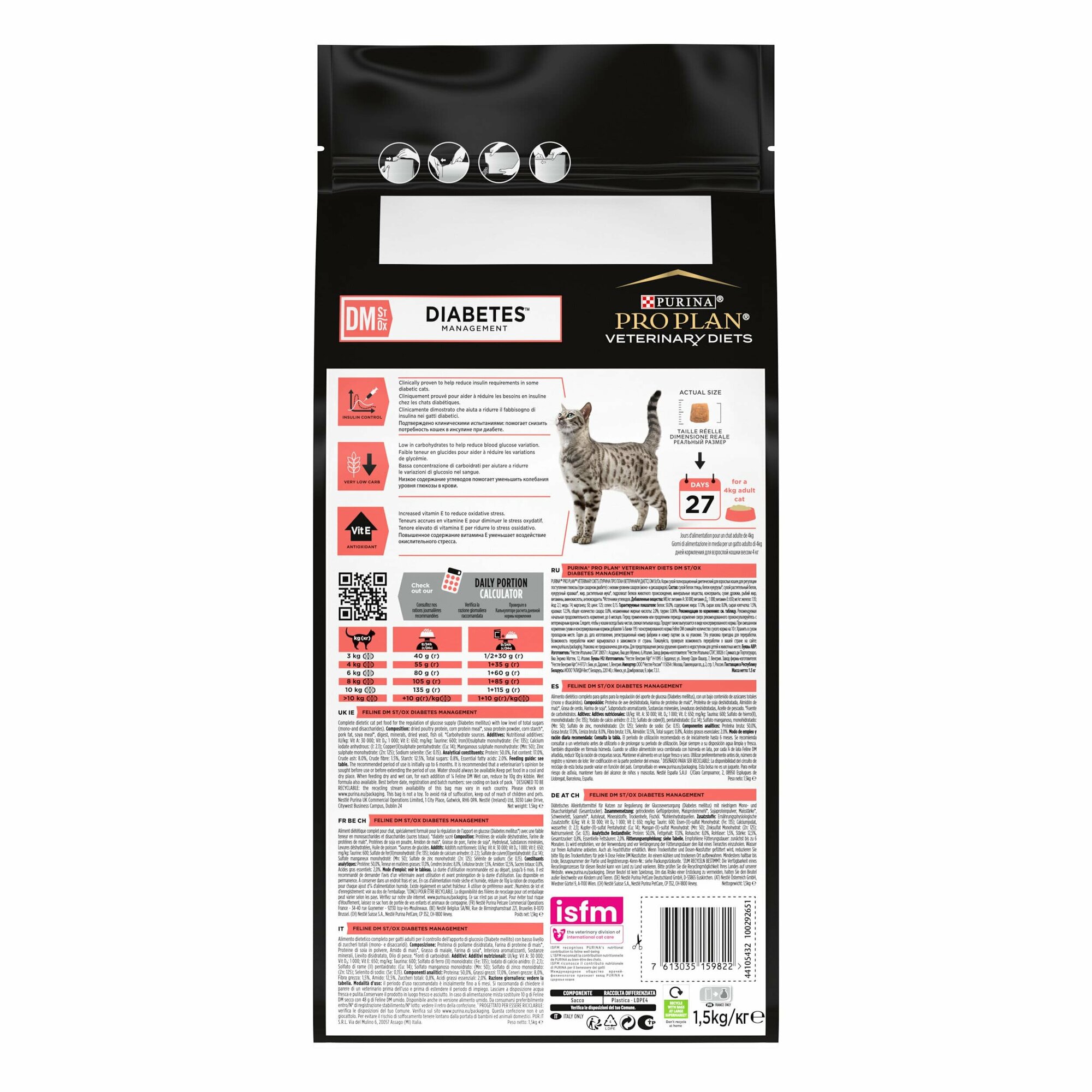 Сухой корм Pro Plan Veterinary Diets DM St/Ox для взрослых кошек при диабете, Пакет, 1,5 кг