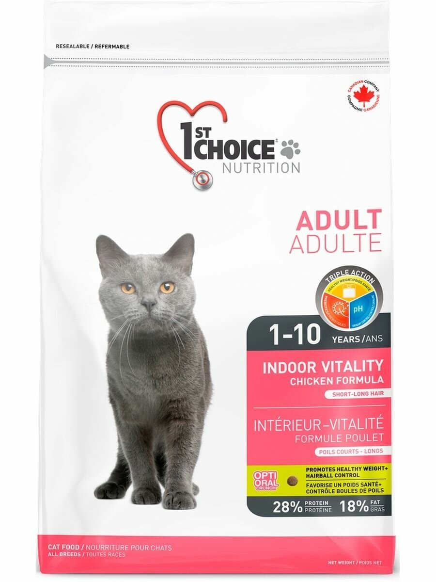 1ST CHOICE CAT ADULT INDOOR VITALITY для взрослых кошек живущих дома с курицей (5,44 кг)