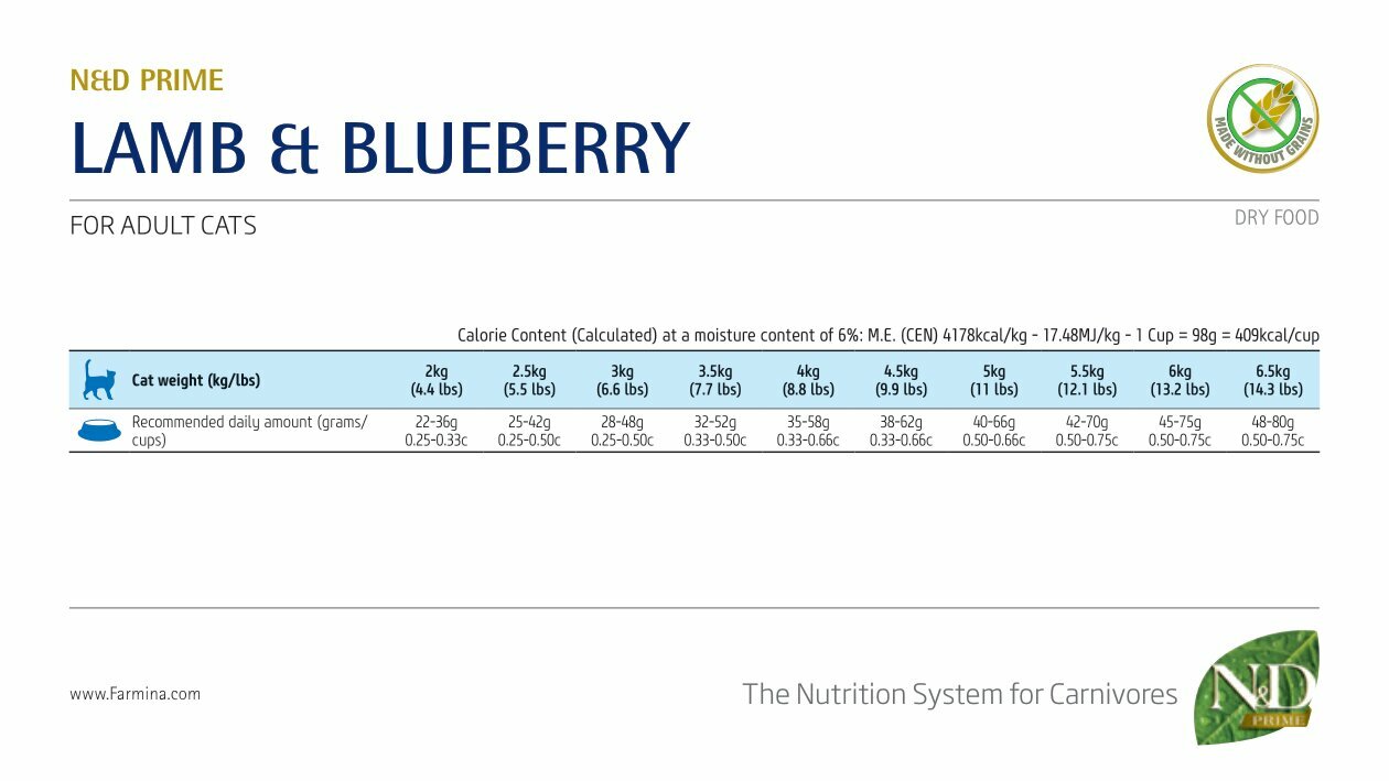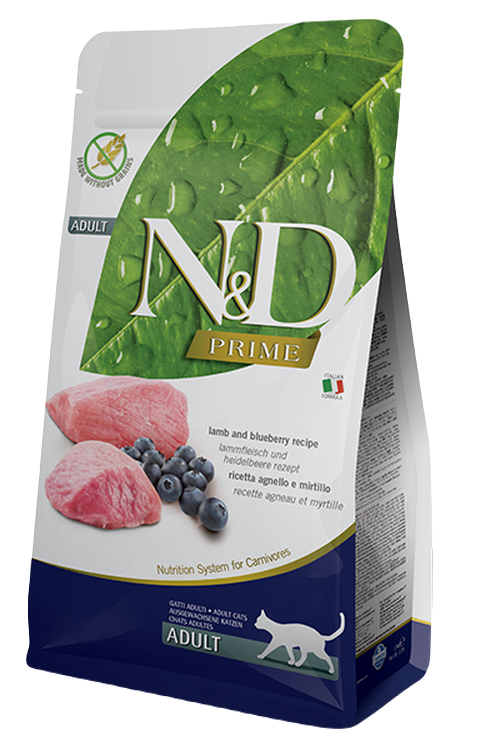 Корм для кошек сухой N&D Prime / Фармина Cat Lamb & Blueberry Adult беззерновой для взрослых животных всех пород, гранулы с ягненком и черникой 1.5кг