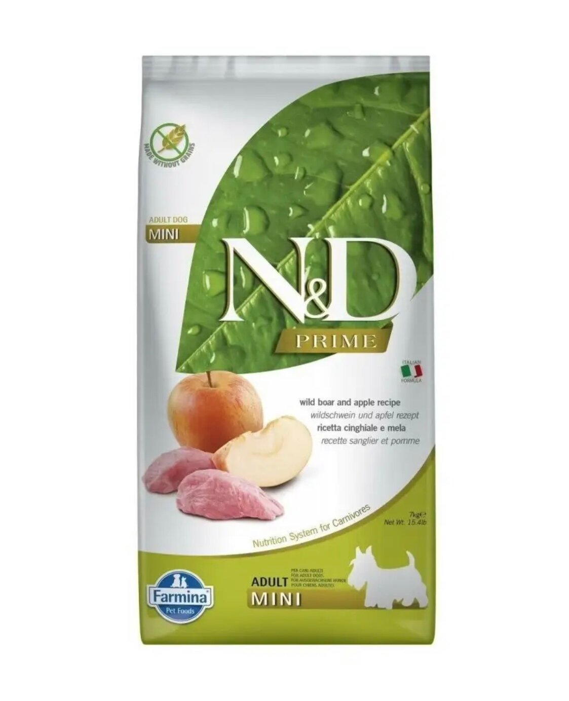 Farmina n&d prime беззерновой корм для взрослых собак MINI (кабан с яблоком)