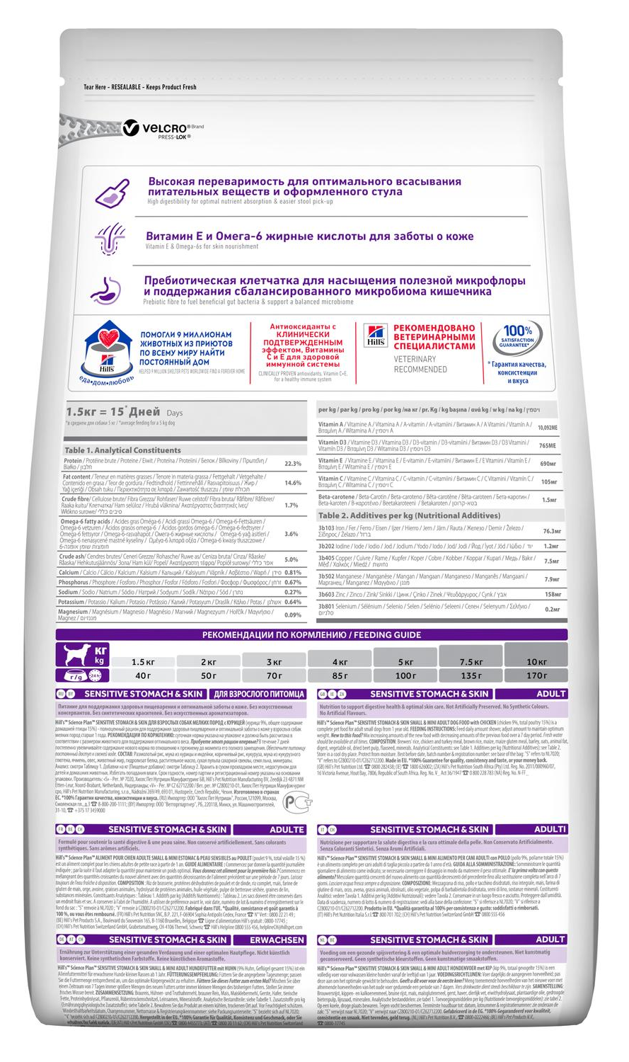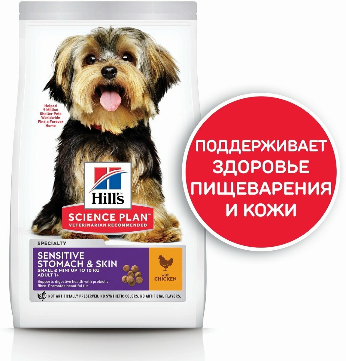 Hill's SP Sensitive Stomach & Skin Корм для собак мелких пород с чувствительной кожей и ЖКТ с курицей 1,5 кг