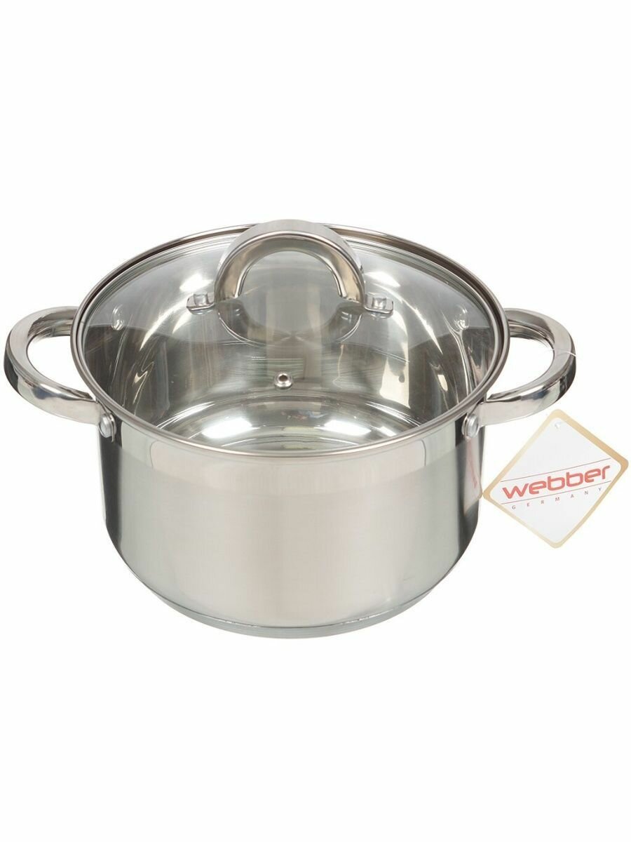 Кастрюля Webber BE-112/2, из нержавеющей стали со стеклянной крышкой, 4 литра
