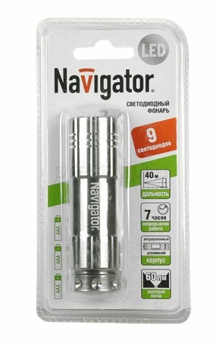 Фонарь светодиодный Navigator NPT-CM07-3АAA светодиодный, алюминий 9LED, блистер. 9 диодов 94 928