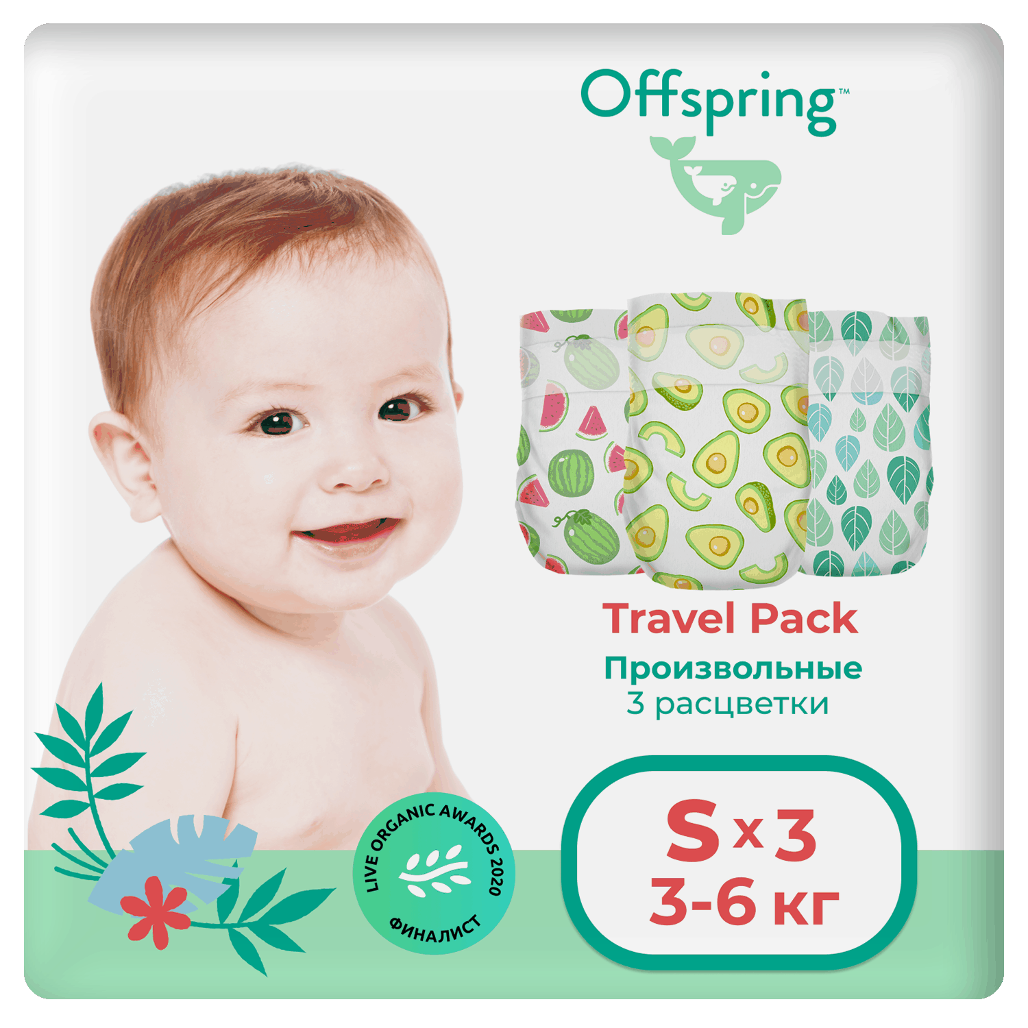 Купить Подгузники OFFSPRING TRAVEL PACK S 3-7кг 3шт. 3 расцветки