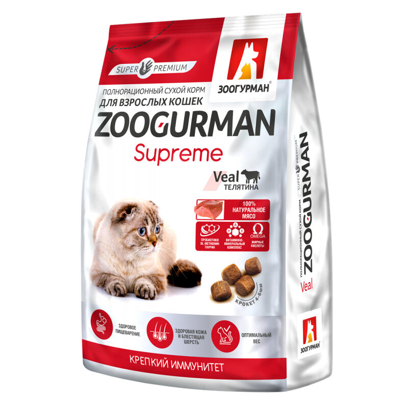 Корм сухой Зоогурман Supreme сух.д/взрослых кошек Телятина 350г