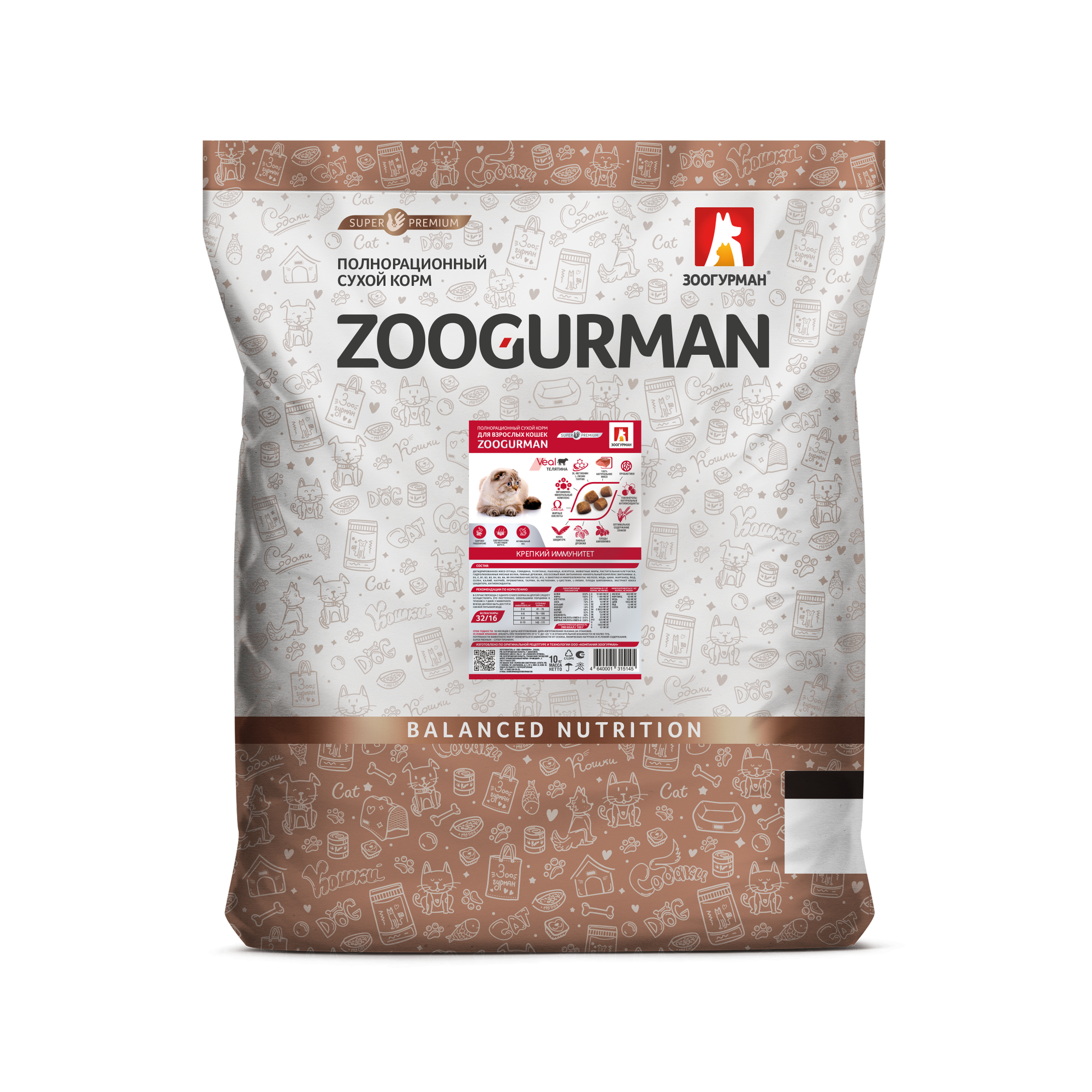 Зоогурман Сухой корм для кошек с телятиной (5145), 10 кг