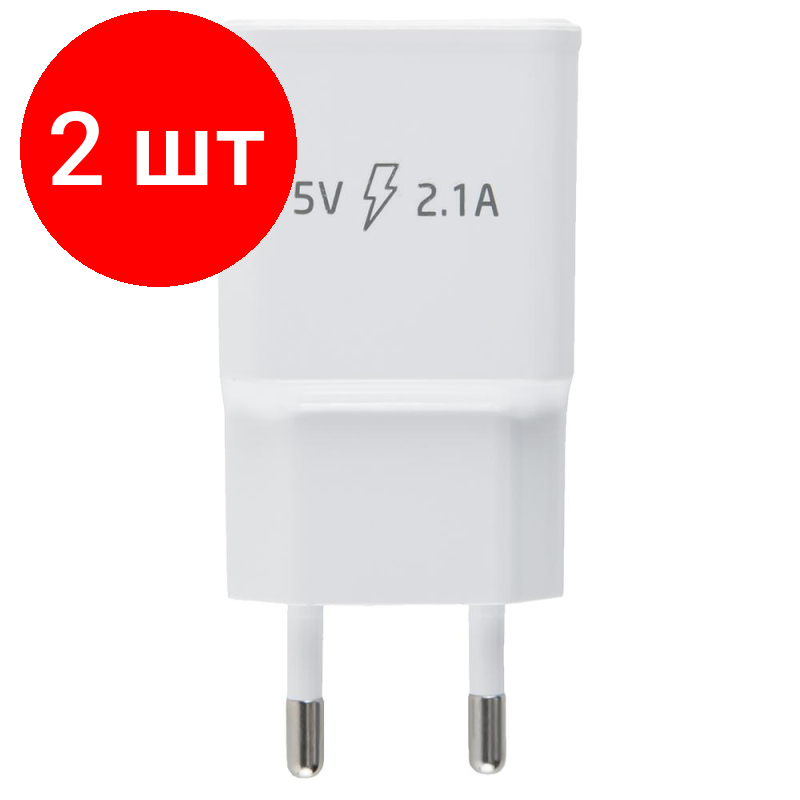 Комплект 2 шт, Зарядное устройство сетевое (220В) RED LINE NT-2A, 2 порта USB, выходной ток 2.1 А, белое, УТ000009405