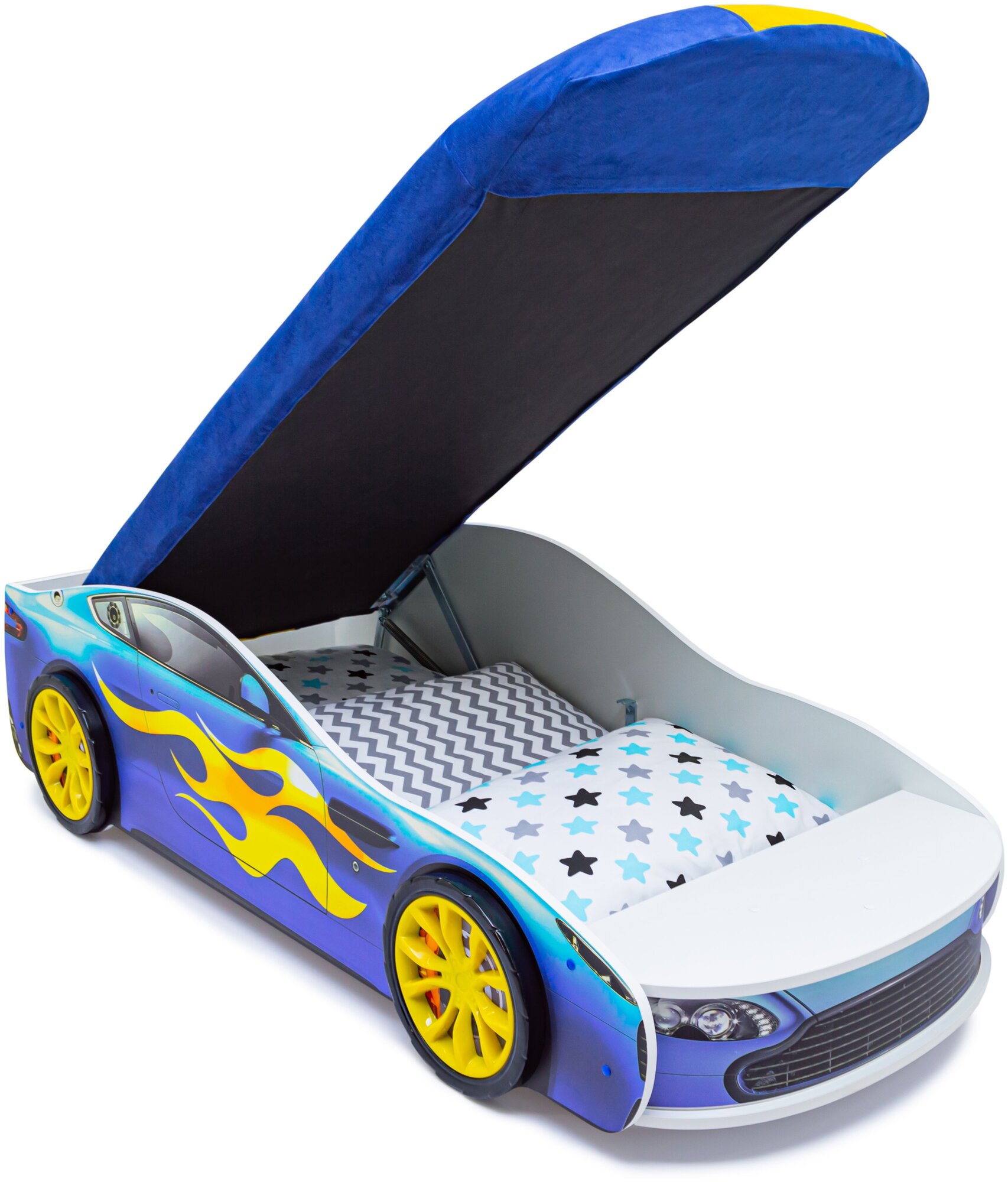 Детская кровать-машина Бельмарко "Бондмобиль желтый" с подъемным механизмом и матрасом