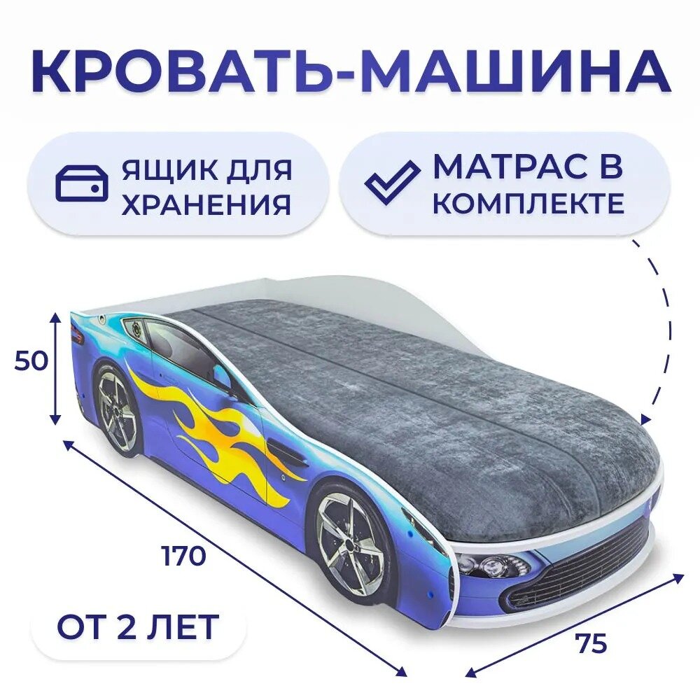 Кровать с матрасом Бельмарко Бондмобиль синий