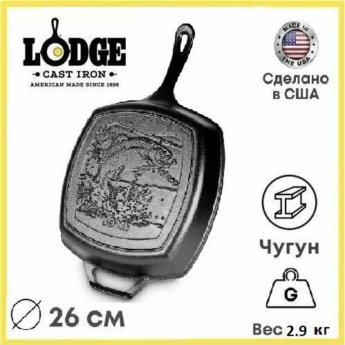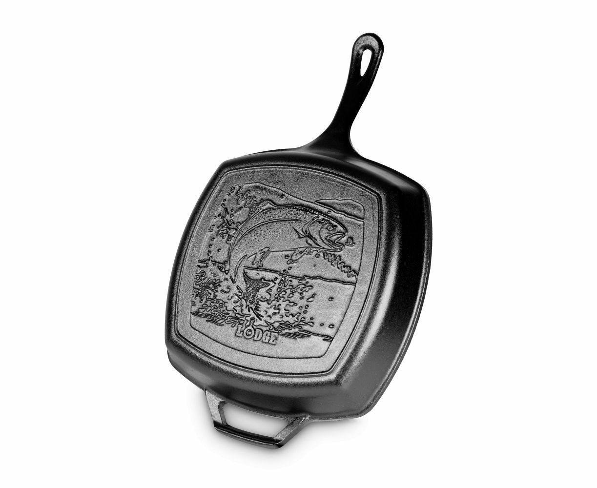 Сковорода - гриль , чугунная, квадратная, 26 см, L8SKWLDR, "Рыба" серия Wildlife, LODGE, США интересное: