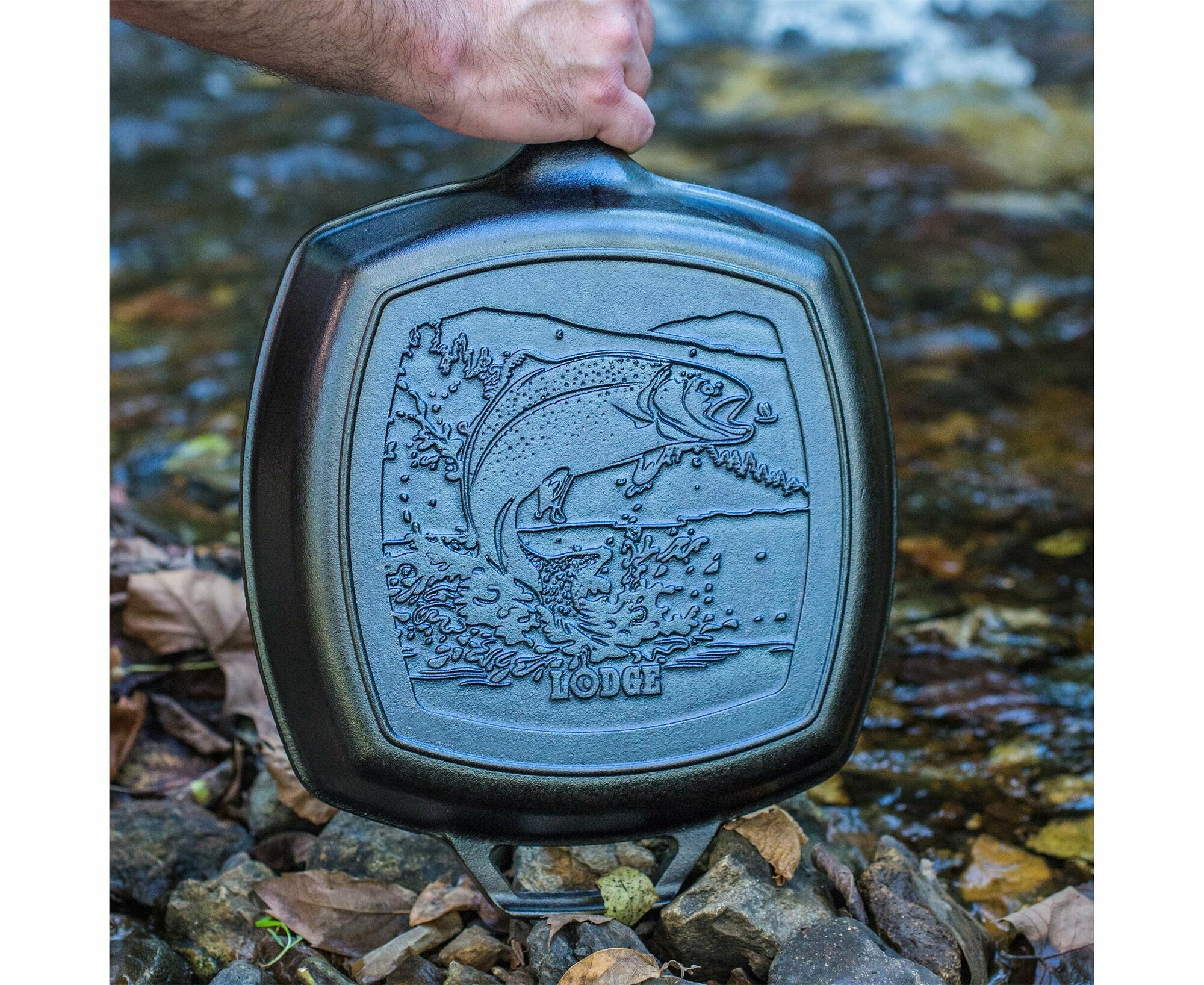 Lodge Чугунная сковорода-гриль квадратная Wildlife Series Fish 26 см (L8SGPWLFI)