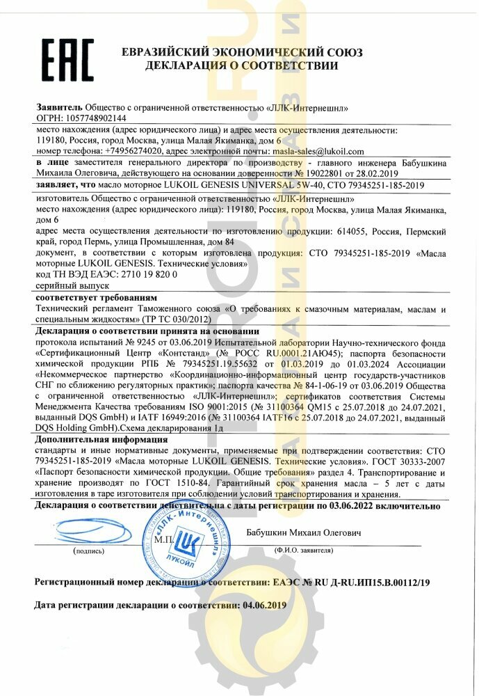 СохранитьLUKOIL Genesis Universal 5w40 Масло Моторное Синт. 1л. Лукойл интересное: