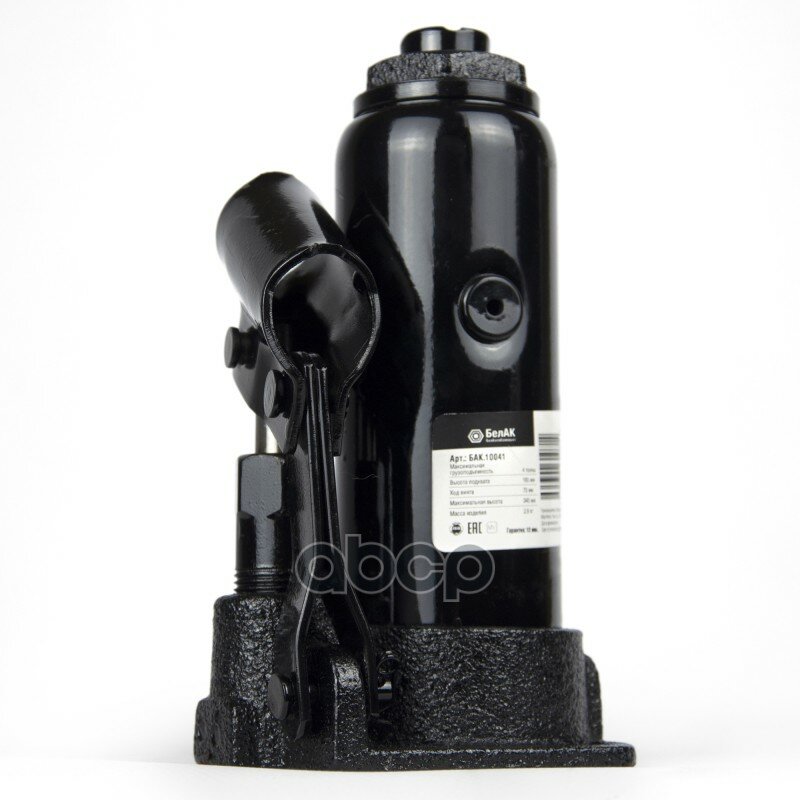 Домкрат бутылочный гидравлический для мототехники БелАК БАК.10041 (4 т) черный