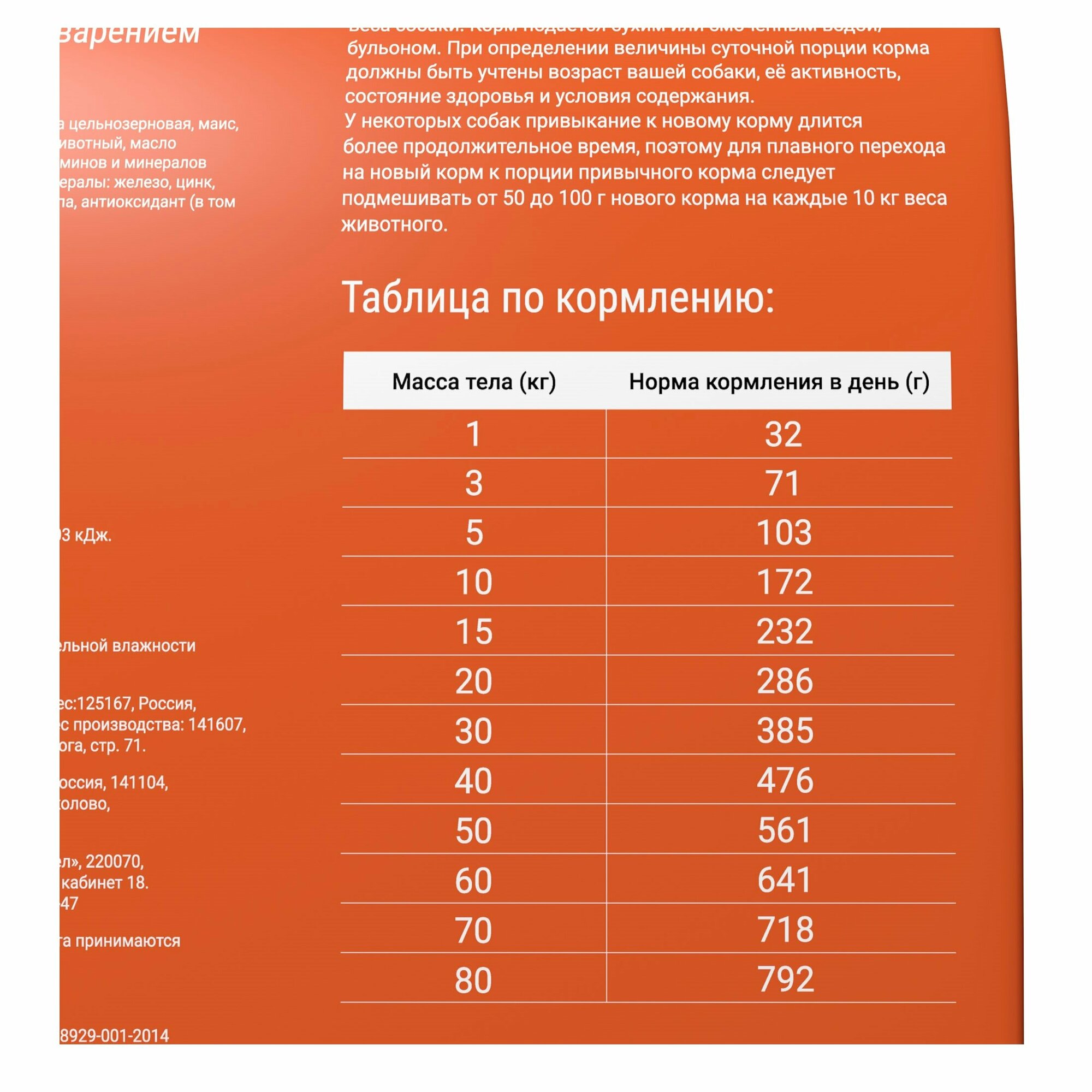 | Состав | пшеница цельнозерновая, мясная мука (в том числе индейка), продукты переработки злаков, гидролизованная печень, жир животный, кукурузное масло, комплекс витаминов и минералов, свекольная пульпа, дрожжи, антиоксидант |