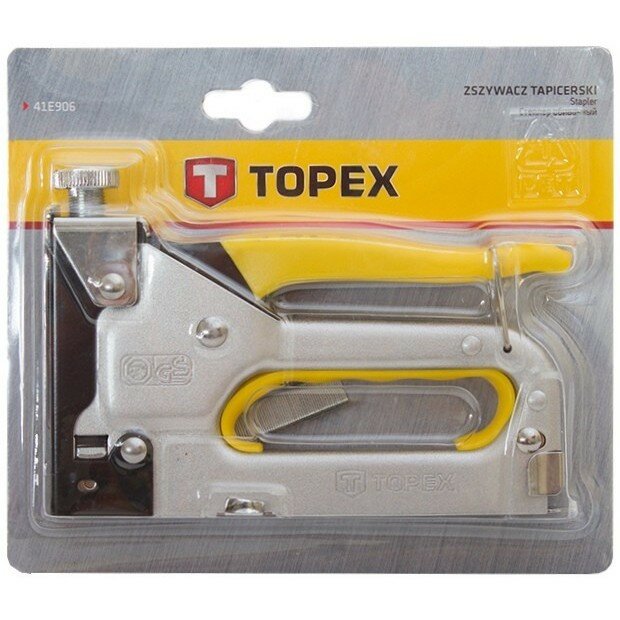 TOPEX Степлер 6-14 мм, для скоб типа J, металлический корпус, регулировка силы забивания, резиновая ручка 41E906