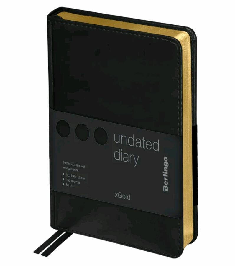 Ежедневник недатированный Berlingo A5, 160 листов, кожзам, "xGold", золотой срез, черный (UD0_81505)