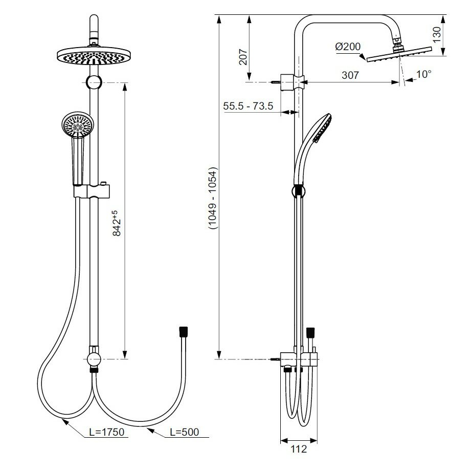 | Дополнительная информация | высота стойки для душа: 1504 мм; диаметр душевой лейки: 110 мм; диаметр верхнего душа: 250 мм |