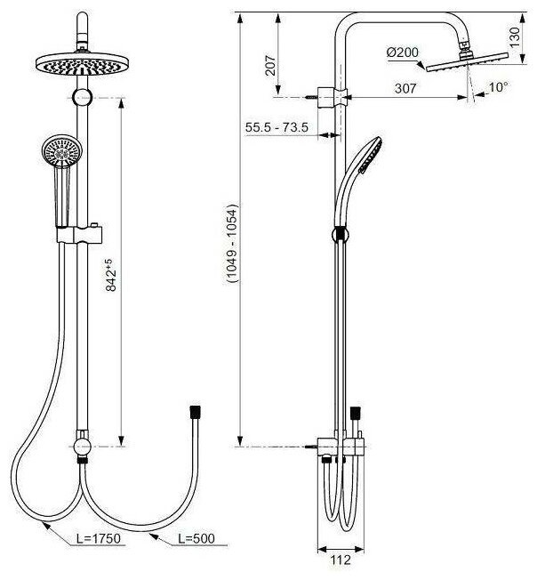 | Дополнительная информация | высота стойки для душа: 1504 мм; диаметр душевой лейки: 110 мм; диаметр верхнего душа: 250 мм |